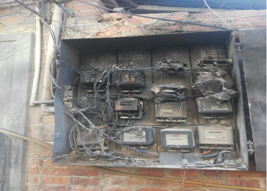 7月21日清晨5點(diǎn),后勤綜合服務(wù)部物管辦接到原二分公司生活基地管理員緊急電話,生活區(qū)平3棟電表箱因持續(xù)高溫用電負(fù)荷增大,線路老化嚴(yán)重造成電表自燃,表箱整體燒毀。由于消防器材的配備完善,平時(shí)對(duì)居民防火意識(shí)的宣傳到位,撲救及時(shí),未造成重大火災(zāi)及財(cái)產(chǎn)損失。接到電話后,后勤物管辦立即安排專業(yè)技術(shù)人員趕赴現(xiàn)場(chǎng),對(duì)事故現(xiàn)場(chǎng)進(jìn)行全面的排查檢修,在不影響整個(gè)小區(qū)居民正常用電的情況下,首先斷開這一棟平房主電源解除安全隱患,在本著以最快速度解決問題和節(jié)約成本的前提下,對(duì)現(xiàn)場(chǎng)進(jìn)行了梳理,就地制定解決施工方案并及時(shí)匯報(bào)領(lǐng)導(dǎo)實(shí)施操作。