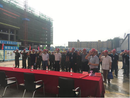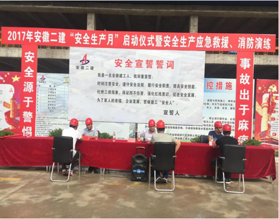 2017年6月8日上午,由安徽二建承建的太和發(fā)藝時尚文化園公共服務(wù)中心項目開展2017年“安全生產(chǎn)月”啟動儀式暨安全生產(chǎn)應(yīng)急救援、消防演練活動,正式拉開了以“全面落實企業(yè)安全生產(chǎn)主體責(zé)任”為主題的安全生產(chǎn)月活動序幕。公司副總經(jīng)理葉和永,安全管理部、工程管理部、保衛(wèi)部、太和PPP項目負(fù)責(zé)人、班組長、一線作業(yè)施工人員等百余人參加了此次活動。