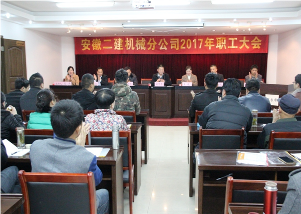 立足新起點(diǎn),實(shí)現(xiàn)新跨越!3月23日上午,安徽二建機(jī)械分公司在原公司三樓會議室隆重召開2017年職工大會。公司黨委書記劉賢奇、紀(jì)委書記仇多維、女工主任王俊及機(jī)械分公司領(lǐng)導(dǎo)班子成員與職工40多人參加了會議。