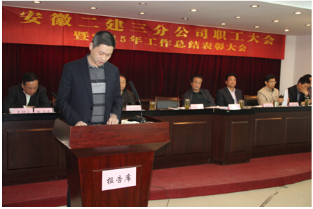 分公司葉和永經(jīng)理在經(jīng)理報(bào)告中圍繞“全面貫徹黨的十八大、十八屆三中、四中、五中全會(huì)精神,深入落實(shí)集團(tuán)首屆職代會(huì)精神及二建公司十五屆三次職代會(huì)精神,以及“基礎(chǔ)管理提升年”為主導(dǎo)思想提出“推進(jìn)從嚴(yán)管理;開(kāi)創(chuàng)科學(xué)發(fā)展新篇章;實(shí)施精細(xì)管理;全面完成既定新目標(biāo)”的分公司工作主導(dǎo)思想。并在會(huì)上作《推進(jìn)從嚴(yán)管理開(kāi)創(chuàng)科學(xué)發(fā)展新篇章實(shí)施精細(xì)管理全面完成既定新目標(biāo)》的報(bào)告,報(bào)告肯定了過(guò)去一個(gè)時(shí)期的工作成果,并在立足市場(chǎng)、客觀分析的基礎(chǔ)上,明晰契合自身的發(fā)展思路、全面部署下一步各項(xiàng)工作。