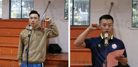 運(yùn)動(dòng)員代表端建軍和裁判員代表高峰分別進(jìn)行比賽宣誓。