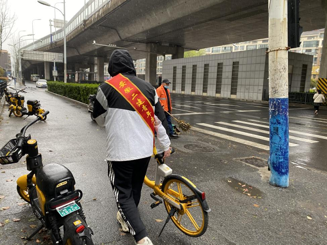 活動(dòng)中,青年志愿者們把“摔倒”在路邊的單車扶起來,將道路兩旁隨意停放的共享單車推到指定停放點(diǎn)擺放整齊,同時(shí)向過往騎車的居民群眾宣傳文明騎行、有序停放的重要意義,鼓勵(lì)大家文明騎車停車。經(jīng)過一個(gè)多小時(shí)的努力,道路周邊共享單車全部擺放整齊,過往的群眾紛紛為志愿者們點(diǎn)贊。