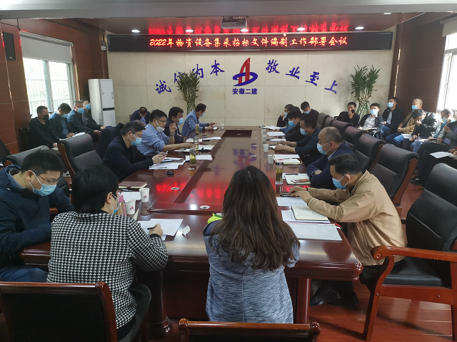 4月19日上午,安徽二建公司在一樓會議室召開2022年物資設(shè)備集采工作部署會議。公司總經(jīng)理李建成、副總經(jīng)理葉和永以及相關(guān)職能部門負責(zé)人、所屬各單位行政負責(zé)人、生產(chǎn)副經(jīng)理及相關(guān)科室負責(zé)人參加會議,會議由公司副總經(jīng)理、總工程師費勤波主持。