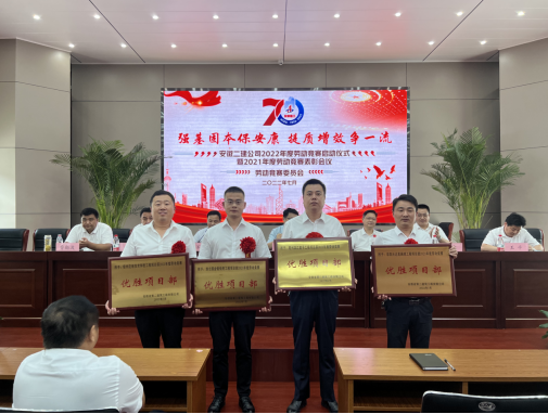啟動(dòng)儀式上,公司黨委委員、副總經(jīng)理葉和永通報(bào)了2021年度“學(xué)黨史、保安康、搶工期、爭(zhēng)一流”勞動(dòng)競(jìng)賽考核結(jié)果及表彰的決定。會(huì)議表彰了2021年度勞動(dòng)競(jìng)賽優(yōu)勝單位、優(yōu)勝項(xiàng)目部。第三分公司、第四分公司等2家被授予“2021年度勞動(dòng)競(jìng)賽優(yōu)勝單位”稱號(hào),宿州應(yīng)用技術(shù)學(xué)校、亳州濱江壹號(hào)、淮北鉑悅府、阜陽(yáng)沃達(dá)星海城項(xiàng)目等4個(gè)項(xiàng)目被授予“2021年度勞動(dòng)競(jìng)賽優(yōu)勝項(xiàng)目部”稱號(hào)。