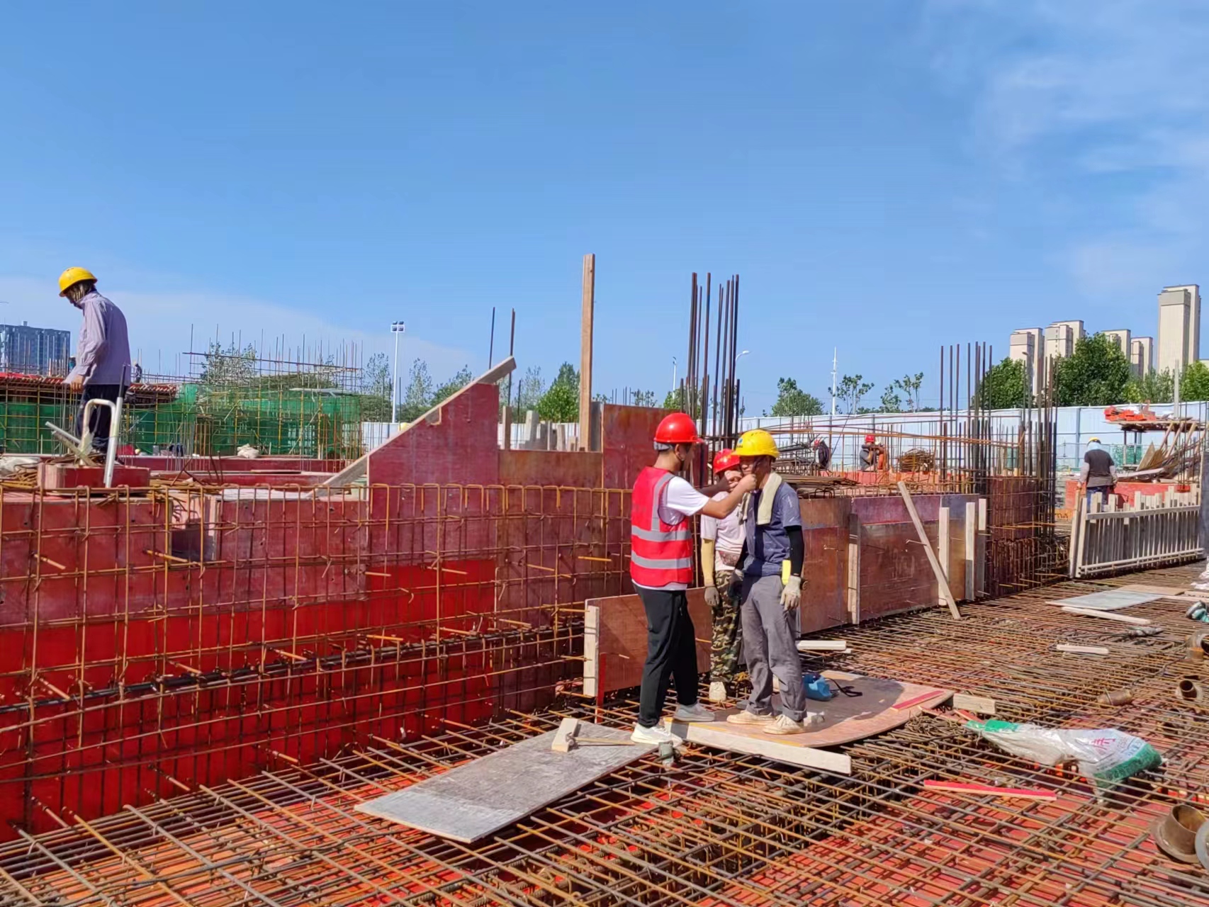 施工現(xiàn)場,工人們揮汗如雨,辛勤勞動