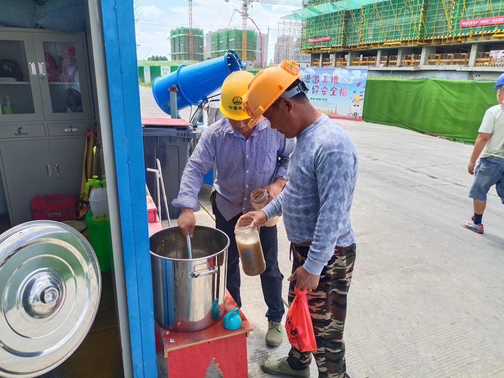 調(diào)整勞動作業(yè)時間、建立應(yīng)急救援預(yù)案、為工人們準(zhǔn)備人丹、藿香正氣水、綠豆湯等防暑降溫物品,確保夏季高溫安全生產(chǎn)工作平穩(wěn)推進。