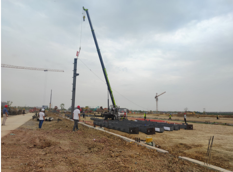 8月16日上午8點(diǎn)28分,長(zhǎng)豐新能源汽車(chē)配套產(chǎn)業(yè)園項(xiàng)目2#廠房鋼結(jié)構(gòu)吊裝施工儀式正式開(kāi)始。項(xiàng)目管理人員對(duì)現(xiàn)場(chǎng)人、材、機(jī)等各項(xiàng)資源進(jìn)行合理調(diào)配,精心組織安排,順利完成了對(duì)長(zhǎng)10.5米,重4噸的第一根柱的吊裝工作,標(biāo)志著項(xiàng)目從基礎(chǔ)施工正式步入吊裝階段。