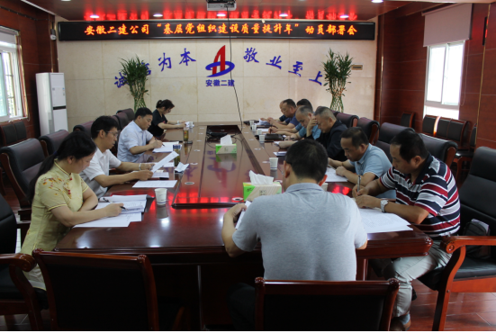 會議傳達了《安徽二建公司“基層黨組織建設(shè)質(zhì)量提升年”活動實施方案》內(nèi)容,圍繞三個著力,以9項重點任務為抓手,從總體思路、重點任務、工作部署、有關(guān)要求四個方面對“基層黨組織建設(shè)質(zhì)量提升年”進行再動員再部署。