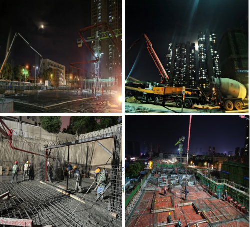 為完成各項節(jié)點計劃,項目管理人員帶領(lǐng)各勞務(wù)班組“搶晴天、戰(zhàn)雨天,牛毛細雨當(dāng)好天”,搶抓工期,比拼進度;進入夏季以來,持續(xù)高溫,市氣象部門接連多次發(fā)布橙色預(yù)警,戶外溫度常達40度以上,為確保工人作業(yè)安全,項目部及時調(diào)整施工作業(yè)時間,在確保施工安全的前提下,采取“干兩頭、歇中間”的施工措施,組織班組加班加點分批交叉作業(yè),呈現(xiàn)出“月亮底下當(dāng)白天,不給黑夜留時間”的大干火熱場面。同時項目部每日在高溫時段為現(xiàn)場施工人員送去防暑藥品和降溫飲品,防止意外發(fā)生。隨著最近氣溫逐漸轉(zhuǎn)涼,整個施工現(xiàn)場挖機聲、機械聲、泵送聲相互交織;夜色下施工現(xiàn)場燈光如晝,人頭躦動;渣土車、混凝土罐車川流不息往返穿梭,現(xiàn)場各個工作面的施工人員都卯足勁往前沖。
