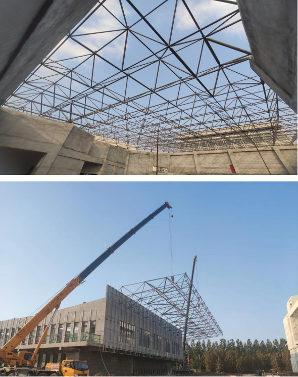 目前,體育中心鋼網(wǎng)架起頭部分已吊裝完成,為下一步順利施工奠定基礎(chǔ)。項(xiàng)目團(tuán)隊(duì)將繼續(xù)以高標(biāo)準(zhǔn)、嚴(yán)要求,提高工程質(zhì)量,完成項(xiàng)目建設(shè)目標(biāo)。